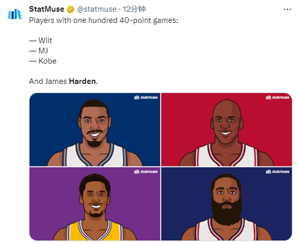 10、哈登生涯第102场单场40+,比肩乔丹、科比和张伯伦成为NBA历史第四人