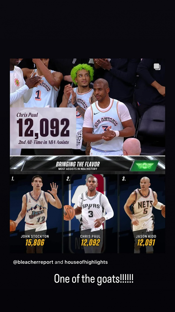 保罗总助攻升到历史第二,NBA众星发声祝贺