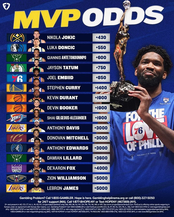 新赛季最新MVP赔率出炉:约基奇居首库里第6 詹姆斯锡安并列第15