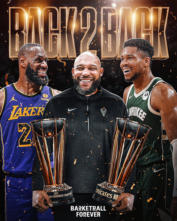 雄鹿助教哈姆实现个人杯赛两连冠,而且杯赛战绩为14胜0负,成功卫冕还保持杯赛不输的纪录,成为史上第一位卫冕杯赛冠军且保持不败的教练,不愧为杯赛的神;值得一提的是,今年湖人小组赛2胜2负提前出局,卫冕失败且无缘八强。