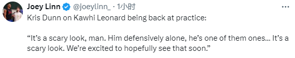 科菲则表示:每个人都为他的回归感到兴奋,我们看到他在球场上训练,这是一个好兆头,你们很兴奋,我们也很激动,我觉得这是同样的能量。