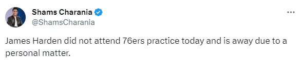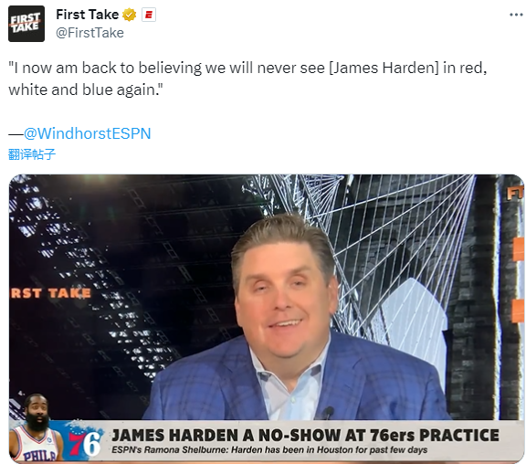 哈登再次缺席训练引热议,名记windhorst表示:我现在重新相信我们再也不会看到詹姆斯-哈登身缠76人队的红白蓝球衣了。