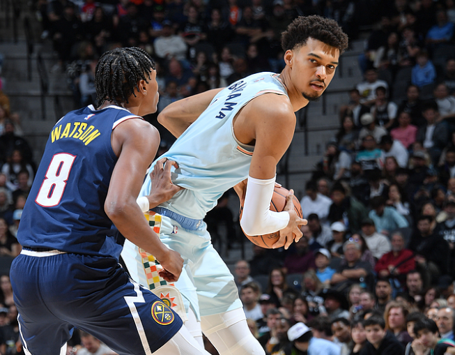 第一节,文班亚马开场欧洲步突破并且杀到禁区打成2+1,防守端保护篮板,不过文班仅仅只打3分36秒就因吃到两次犯规被迫下场,文班下场后马刺仍与掘金打得十分胶着,马刺首节27-30落后3分,文班遭遇犯规困扰,约基奇打满首节,马刺仍咬住分差。