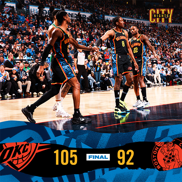 主场大战卫冕冠军,雷霆上半场55-65落后10分,但下半场雷霆疯狂反扑,第三节21-15追到4分,末节29-12攻防两端打爆凯尔特人,期间亚历山大追身大帽塔图姆,随后助攻哈腾隔扣怀特,多尔特则是外线连中三分输送火力,最终雷霆105-92逆转凯尔特人。