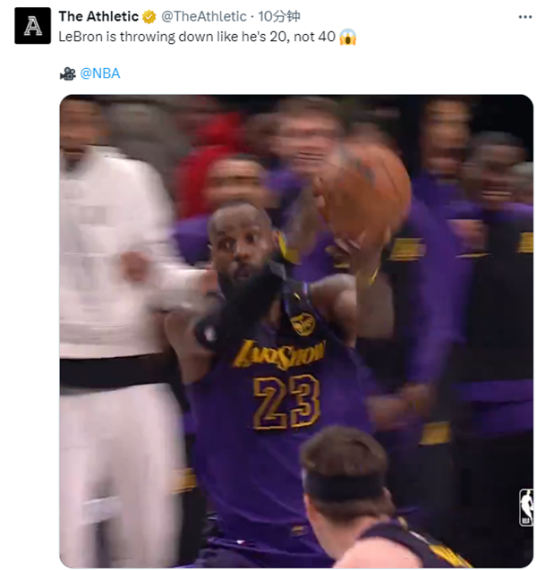 40岁詹姆斯被打脸仍不讲理隔扣莱夫利,众美媒刷屏转发,全美热议他40岁了,湖人记者调侃:更搞笑的是这球竟不是2+1。