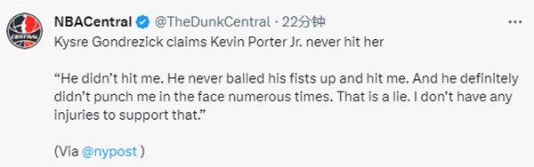 来源:JRS直播网10-18 12:27JRS直播网10月18日,在火箭和雷霆达成3换2交易,搭上两个次轮签送走小波特后,小波特的前女友凯斯雷-冈德雷奇克公开澄清,小波特从未用拳打她,更是直言地方检察官造谣并且要求他们澄清虚假记录。