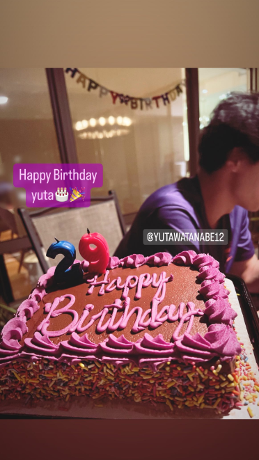 渡边雄太的妻子久慈晓子晒生日蛋糕祝丈夫29岁生日快乐,太阳三巨头杜兰特、布克和比尔都为他录视频送生日祝福;之后渡边转发视频并且配文写道:感谢大家。所以我的生日礼物呢?