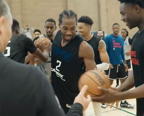 快船训练接近尾声,卢指导和众球员打赌折返跑,卢表示:如果我两次罚球都进,我们还需要再来个折返跑,如果我丢一个,今天训练就结束了。