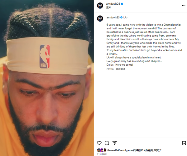 来源:JRS直播网02-04 17:48JRS直播网讯 北京时间2月4日,在湖人、独行侠和爵士三方大交易之后,安东尼-戴维斯首次发声,深情告别洛杉矶,却只字不提湖人,浓眉感谢洛杉矶以及致敬队友,却只字不提湖人。