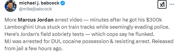 重磅!乔丹之子因酒驾深陷囹圄,被捕时搬出父亲身份