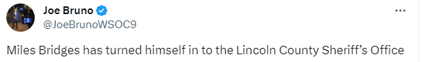 黄蜂记者Joe Bruno报道,由于违反保护禁令,布里奇斯已经向警局自首;该记者还晒出一张布里奇斯的照片,布里奇斯居然还能笑的出来?