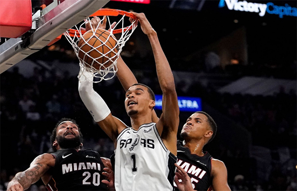 文班亚马15投轰23+3帽:多次暴扣点燃球馆 攻防一体令对手惧怕