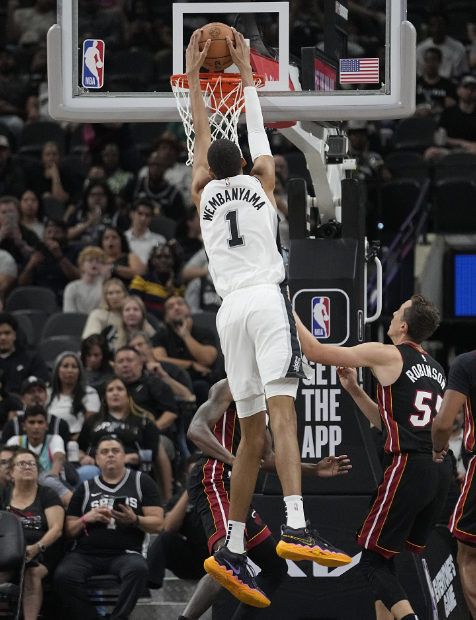上一场文班亚马迎来NBA首秀,对阵雷霆高效轰下20分5篮板,今日对阵热火,文班亚马又打出疯狂表现,多次暴扣、频频送出大帽以及展现多样的得分武器,马刺状元真不愧为独角兽,不得不说,马刺的崛起就靠文班了。
