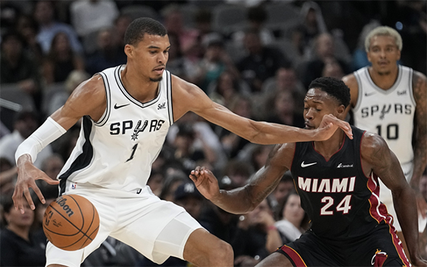 首节比赛,文班亚马带队9-0开场,期间轻松得分以及禁区大帽海史密斯,之后热火顽强追分,第一节打完马刺24-25落后1分,文班亚马上场8分钟6投2中拿到4分1篮板1助攻1盖帽。