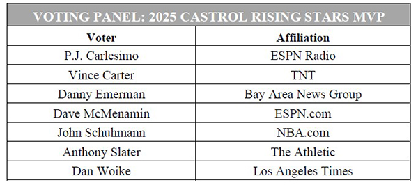 卡斯尔随队晋级全明星正赛,这一支新秀年轻军将对阵奥尼尔OG战队——詹姆斯、库里、塔图姆、杜兰特、哈登、利拉德、杰伦-布朗和欧文。