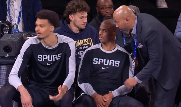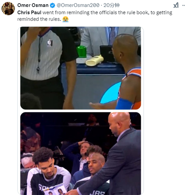 保罗和文班作弊,现场官方人员拿着规则单过来给他俩进行了解释,被取消资格时,文班亚马一脸无奈和不满;马刺组合的作弊行为引发巨大争议,有球迷表示:保罗从提醒裁判遵守规则到让裁判提醒自己遵守规则。