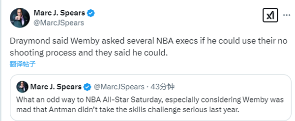 赛后文班亚马表示卡bug的这个主意是他自己想的,追梦则表示,文班询问过几位NBA高管,是否可以在比赛的过程中不投篮,高管们说可以。