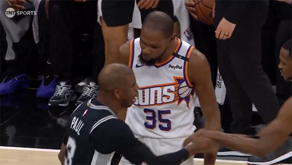 上半场,杜兰特8中5中独砍10分2篮板2助攻,期间杜兰特和保罗发生争执,两人贴面吵架,谁也不让谁,最终裁判吹罚双方技术犯规;布克状态不佳,上半场6投0中仅仅拿到4分4助攻。
