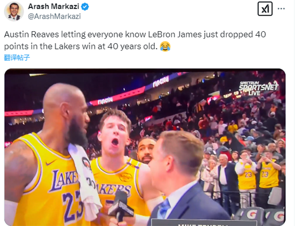 詹姆斯疯狂一战引热议,赛后接受采访时,里夫斯上前对着镜头说道:40分,老家伙;谈到自己本场表现,詹姆斯表示:下一场比赛我会打得更好。
