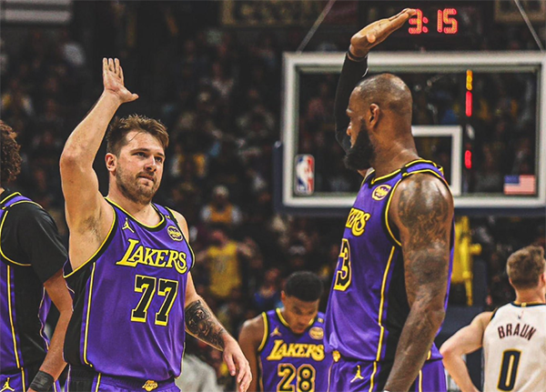 在昨日的比赛中,湖人全队火力全开,四人得分20+,最终以123-100大胜掘金,终结了对手的9连胜,同时也终结了自己在丹佛高原的8连败(包括季后赛)。此役,40岁的詹姆斯依旧状态神勇,贡献25分9篮板5助攻,还上演了平框暴扣,让人惊叹他的竞技状态。而东契奇更是打出了加盟湖人后的最佳一战,全场22投10中,轰下32分10篮板7助攻,用全面且亮眼的数据宣告自己的强势回归。