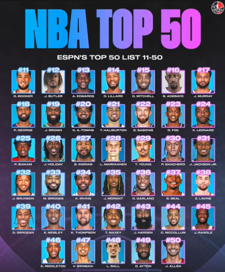 最后值得一提的是,ESPN公布新赛季百大球星排名,哈登仅仅排在第43名,相比于上赛季排名联盟第11,哈登的排名暴跌32位。