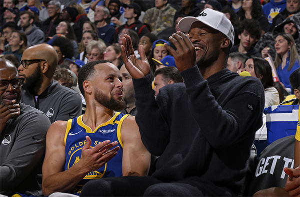 勇士客场对阵76人,今日巴特勒因背部痉挛缺席比赛,库里扛起球队的进攻大旗,外线三分早早开张,空切轻松上篮得分;遭遇夹击后,库里频频送出助攻串联全队;打着打着,库里再次得分,接连轰进两记三分,更是轰进超远三分点燃替补席,巴特勒笑着为他鼓掌庆祝;库里首节7中4、三分5中3拿到12分4助攻2篮板,带队与76人对攻。