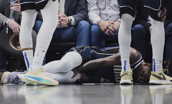 独行侠和国王比赛第一节打到2分35秒,欧文持球突破上篮时,自己的膝盖与瓦兰丘纳斯对撞,落地时左膝反关节受伤,欧文痛苦倒地不起,独行侠全队都十分担忧;由于左腿无法支撑身体,欧文被搀扶离场,返回更衣室途中,欧文掉头被架到罚球线,忍痛坚持罚球,全场球迷为他鼓掌以及高呼MVP;执行罚球后欧文被架回更衣室。