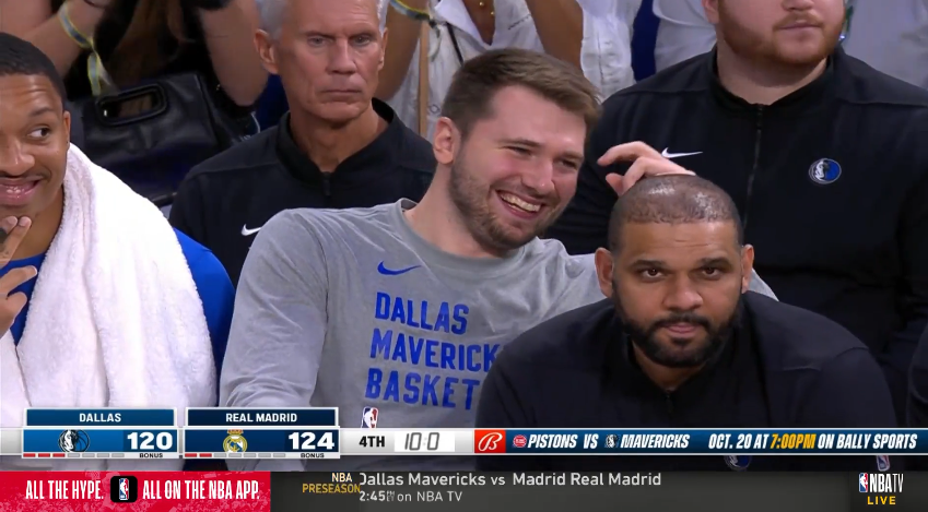NBA季前赛对阵老东家皇马,东契奇在这里受到热烈的欢迎;皇马队在现场大屏幕上播放视频向东契奇致敬,东契奇挥手向球迷致意以及现场表彰东契奇;不过本场比赛,东契奇只打了5分钟。