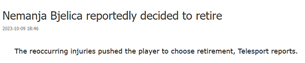 今夏别列察再次无缘回归NBA,与费内巴切分道扬镳,并且加盟贝尔格莱德红星;虽然他出席了贝尔格莱德红星的媒体日,但目前仍未在欧洲联赛中完成注册;如今35岁的别利察计划退役。