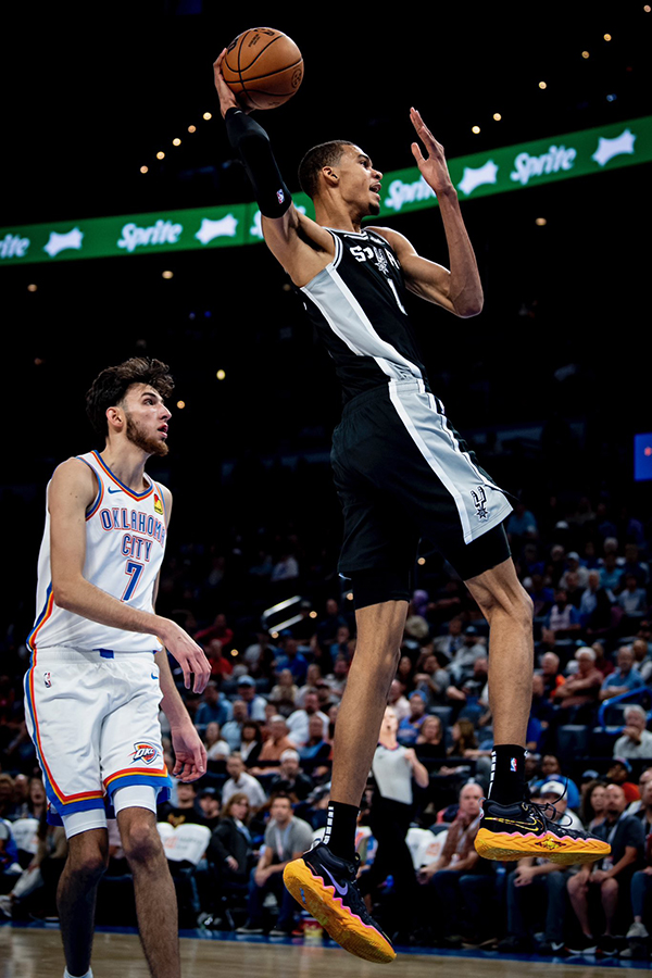 文班亚马谈到空中换手得分,表示:那是即兴操作。