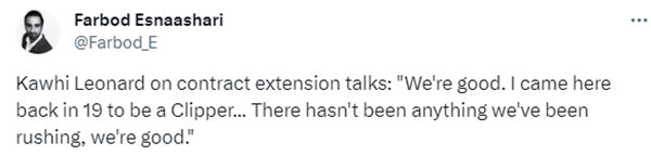 谈到与快船的续约话题,小卡表示:自我2019年加入球队后,我与球队之间的关系就一直很好。我和管理层的关系、沟通很好,现在我和球队管理层那都认为没必要那么仓促,我们谈过了,那这事没那么急。
