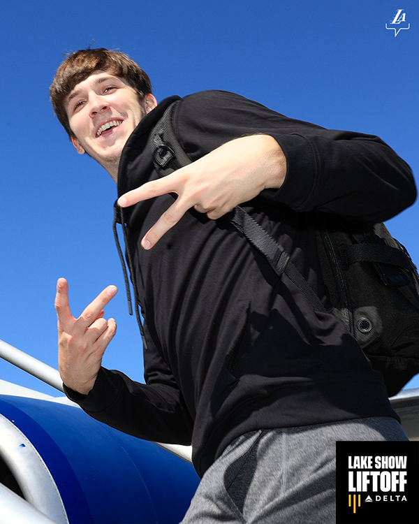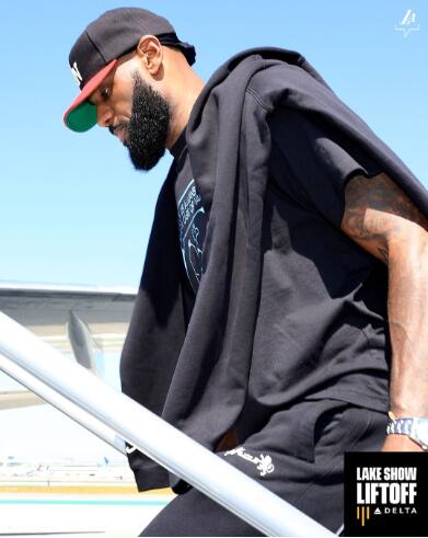 湖人正式飞往湾区!詹姆斯一脸严肃浓眉表情霸气 里夫斯八村满脸笑容