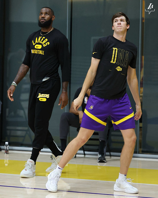 揭秘湖人训练营!詹姆斯连秀杀招+中3分怪叫庆祝 八村海斯霸气暴扣