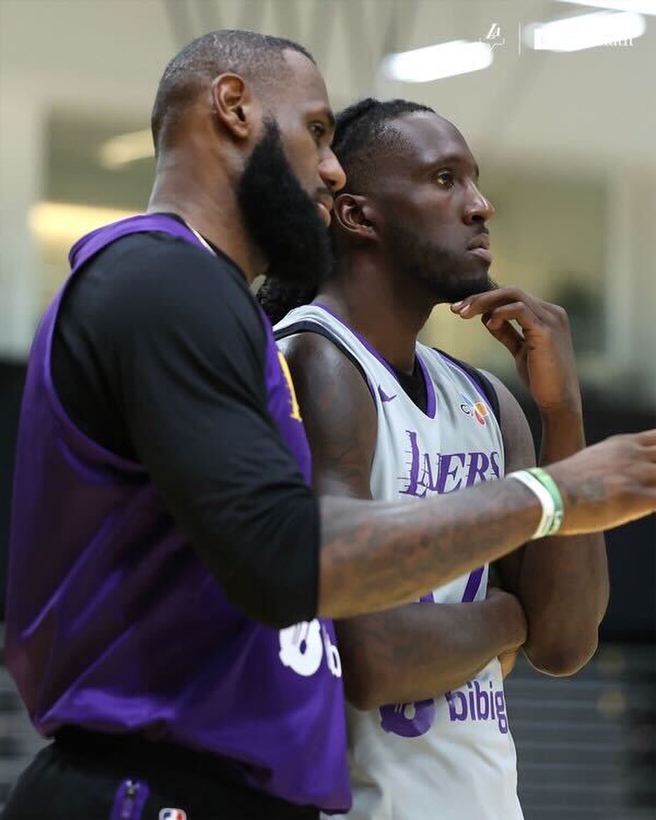 湖人训练营第二日,从湖人晒出的视频中可以看出,在一次训练对抗赛中,詹姆斯、拉塞尔、里夫斯、伍德等人一队,詹姆斯身穿湖人紫色6号球衣——持球扛着防守人突破到禁区,然后急停滞空投篮得分;詹姆斯为拉塞尔挡拆之后获得进攻机会,老詹拿球后突到另一侧后仰跳投得分。