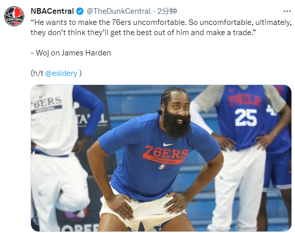 哈登正在前往76人训练营的路上,归队的意图是为了搅乱76人训练营,woj报道:哈登想被交易,他就是想让76人难堪。现在的处境就很难堪。说到底,76人不做交易的原因是他们不觉得可以从他身上获得最好的回报;另一方面,76人希望等待这一切结束。
