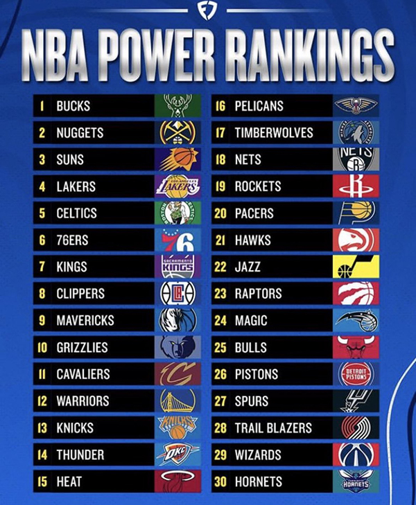美媒评NBA球队实力榜:雄鹿位居榜首 湖人第4勇士仅排第12位