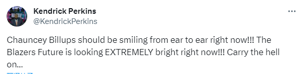 对于开拓者今夏的变化,名嘴帕金斯发推写道:比卢普斯现在应该笑得合不拢嘴,开拓者前途一片光明。