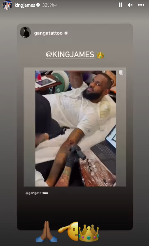 詹姆斯又添了什么新纹身?38岁的詹姆斯身穿白色T恤现身纹身馆,躺在床上一脸淡定,纹身师在他的手臂上纹了一处王冠;纹身之后老詹与纹身师合影,面带笑容十分满意;老詹还转发纹“王冠”的视频,配上表情感谢纹身师。