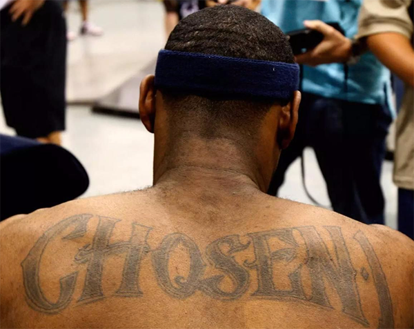 到目前为止,詹姆斯的身体上已经纹了很多纹身——后背上纹着“天选之子”以及其他纹身,大腿上纹着致敬科比的图案,纹有黑曼巴、8号、24号和曼巴永恒等字样;老詹还把家人的照片纹在身上,浑身上下,已经纹了几十处纹身。