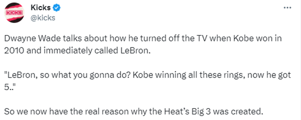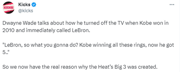 韦德透露招募詹姆斯内幕 科比夺五冠后他打电话询问:勒布朗你想咋做