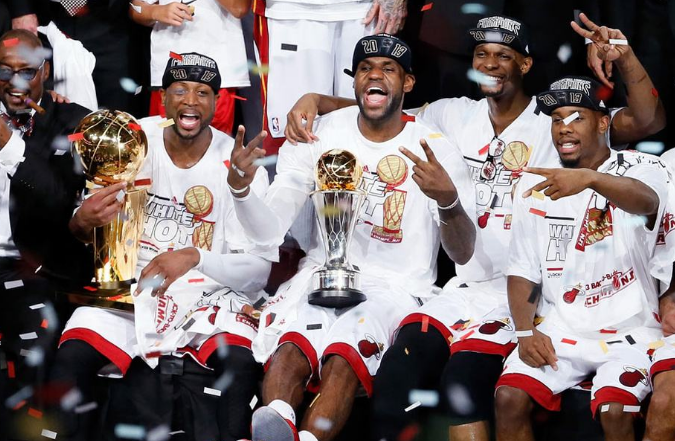 在韦德的招募下,最终詹姆斯决定离开骑士,并且以自由球员的身份加盟热火,联手韦德和波什组成热火三巨头,他们一起打了4个赛季,连续4年统治东部以及带队杀进总决赛,2次夺得总冠军,詹姆斯还2次夺得FMVP奖杯。