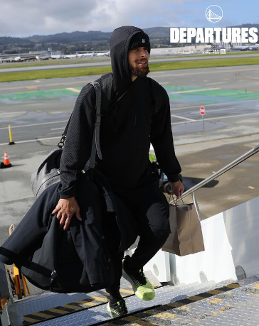 勇士众将正式飞往明尼苏达,库里身穿一套黑色运动装、挎着单肩包登上飞机;38岁的保罗戴着一顶小绿帽,面带笑容一脸轻松;维金斯的纯真笑容最治愈,也是最抢镜的。