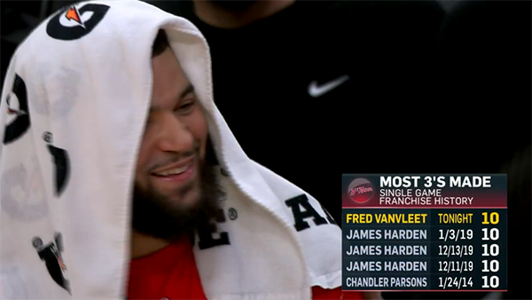 5、范乔丹单场命中10记三分追平哈登保持的火箭队史纪录