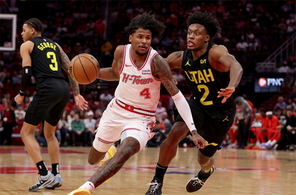 面对连败的爵士,范弗利特和杰伦-格林首节合砍30分,并且带队第一节44-21狂赢26分,火箭榜眼格林大秀天赋,多次暴扣点燃球馆;第二节,火箭牢牢掌控局面,半场打完火箭85-55领先30分,半场命中15记三分打爆爵士,期间场上爆发冲突,两人被驱逐离场。