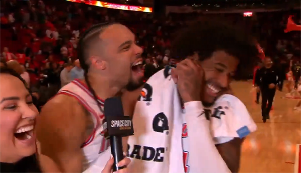 赛后,杰伦-格林接受美女记者的采访时,狄龙乱入打断他的采访,熊抱格林并且大喊大叫。