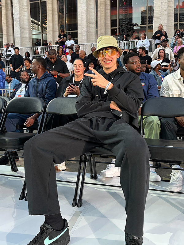 杜兰特戴着一顶小紫帽出席活动,文班亚马身穿一套绿色运动装并且搭配金色发型,切特、希罗戴着墨镜,他们的打扮都十分抢镜。