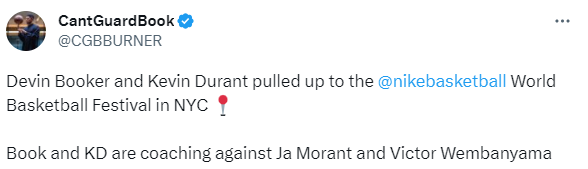 太阳两大球星杜兰特和布克还在现场客串教练,执教一支球队对抗文班亚马和莫兰特的球队;值得一提的是,安东尼的儿子(基扬-安东尼)就在杜布执教的球队之中。