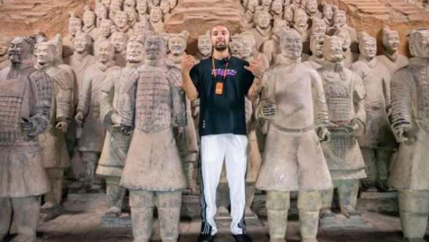 中国行期间,阿尔瓦拉多在西安站,蹲在地上吃肉夹馍,逛老街以及游览参观兵马俑,十分接地气。