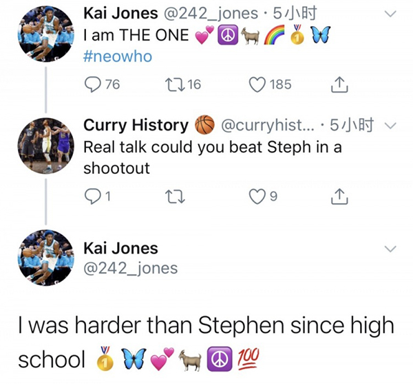 凯-琼斯回复:自高中起我就比库里更强硬了。