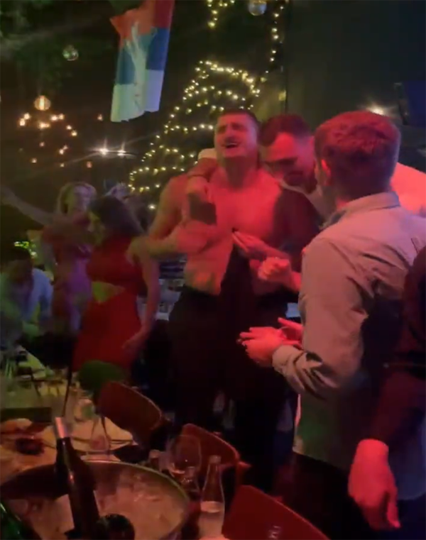 约基奇参加国家队狂欢派对曝光:赤裸上身尽情摇摆 赘肉肚腩太抢镜